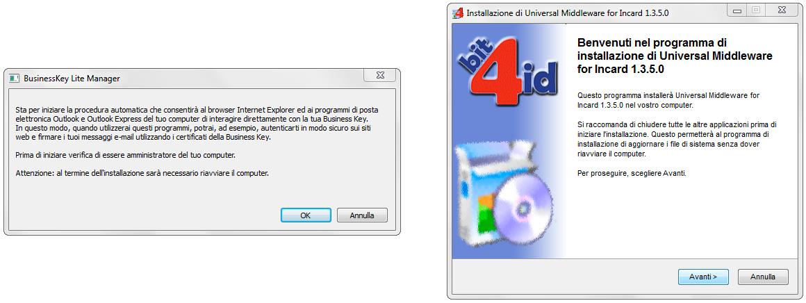 • Un lettore, correttamente installato, qualora il certificato fosse a bordo di una Smart Card;