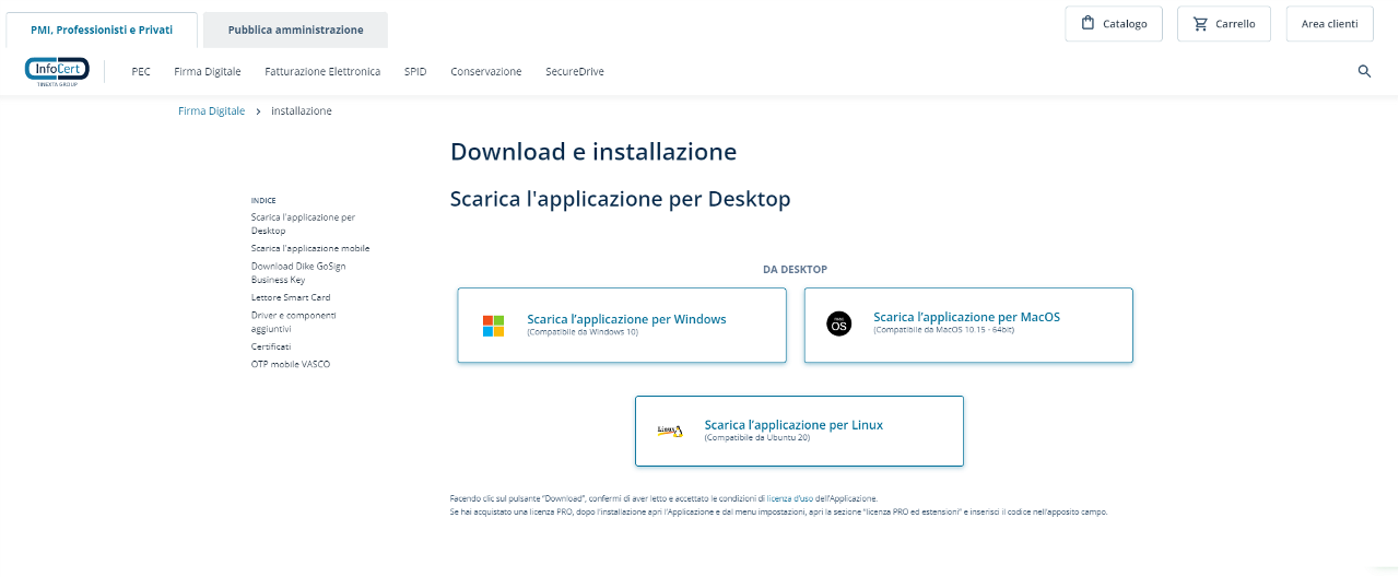 Infocert mette a disposizione i moduli CSP su una pagina dedicata del sito di Firma Digitale. Una volta individuato il numero di serie del proprio dispositivo, non resta che salvare sul proprio computer il software suggerito.