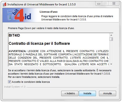 Leggere e accettare le condizioni di fornitura del software proposte dalla licenza e procedere con un clic sul pulsante Installa.