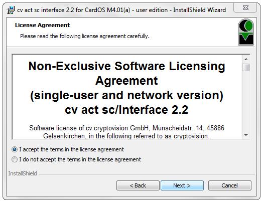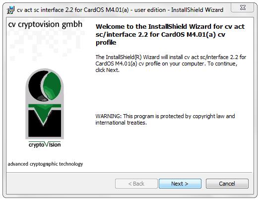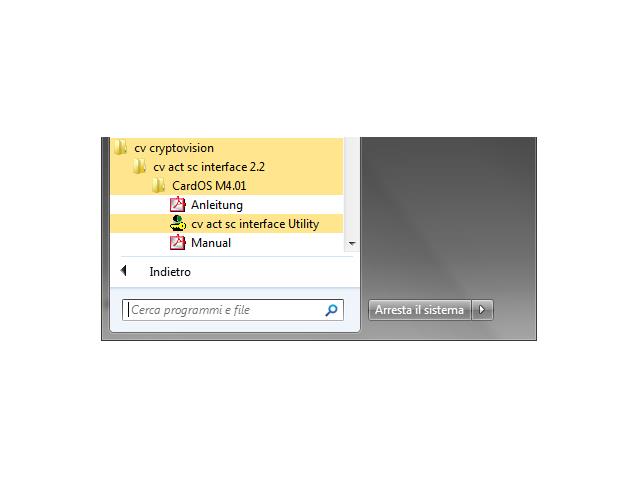 Per verificare la corretta installazione del modulo CSP, controllare che all’interno del menu Start del proprio computer sia presente la cartella cv cryptovision e far partire il cv act sc interface Utility con un clic.