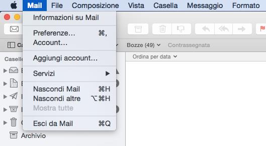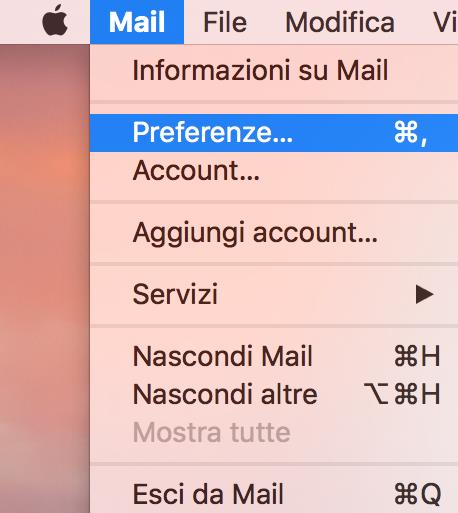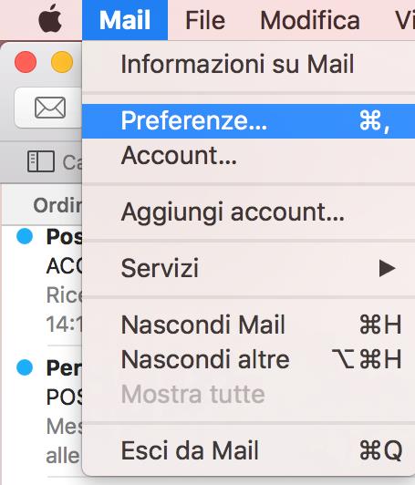 Posso verificare la correttezza della configurazione appena eseguita selezionando la voce _Preferenze _dal comando di menu Mail.