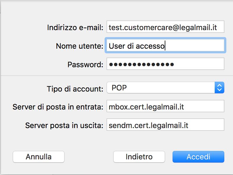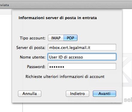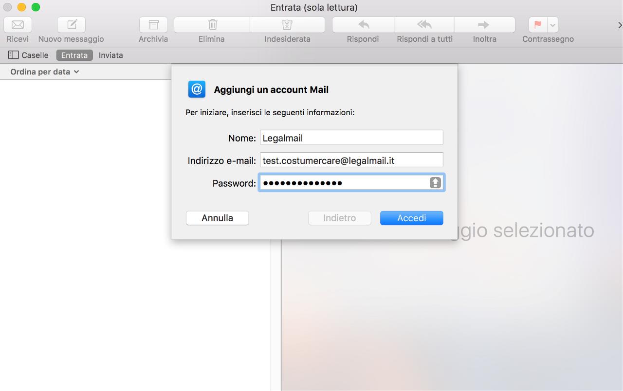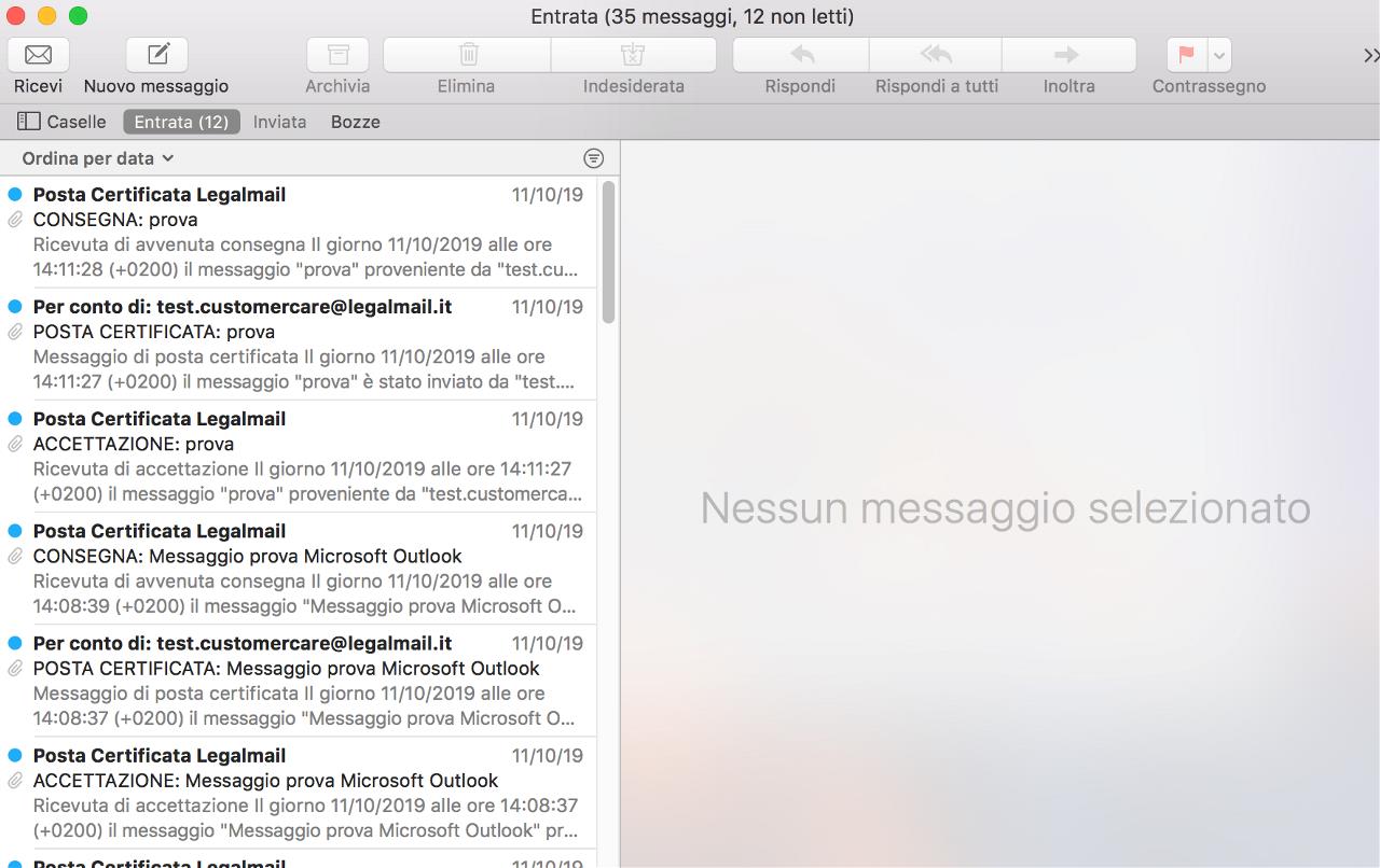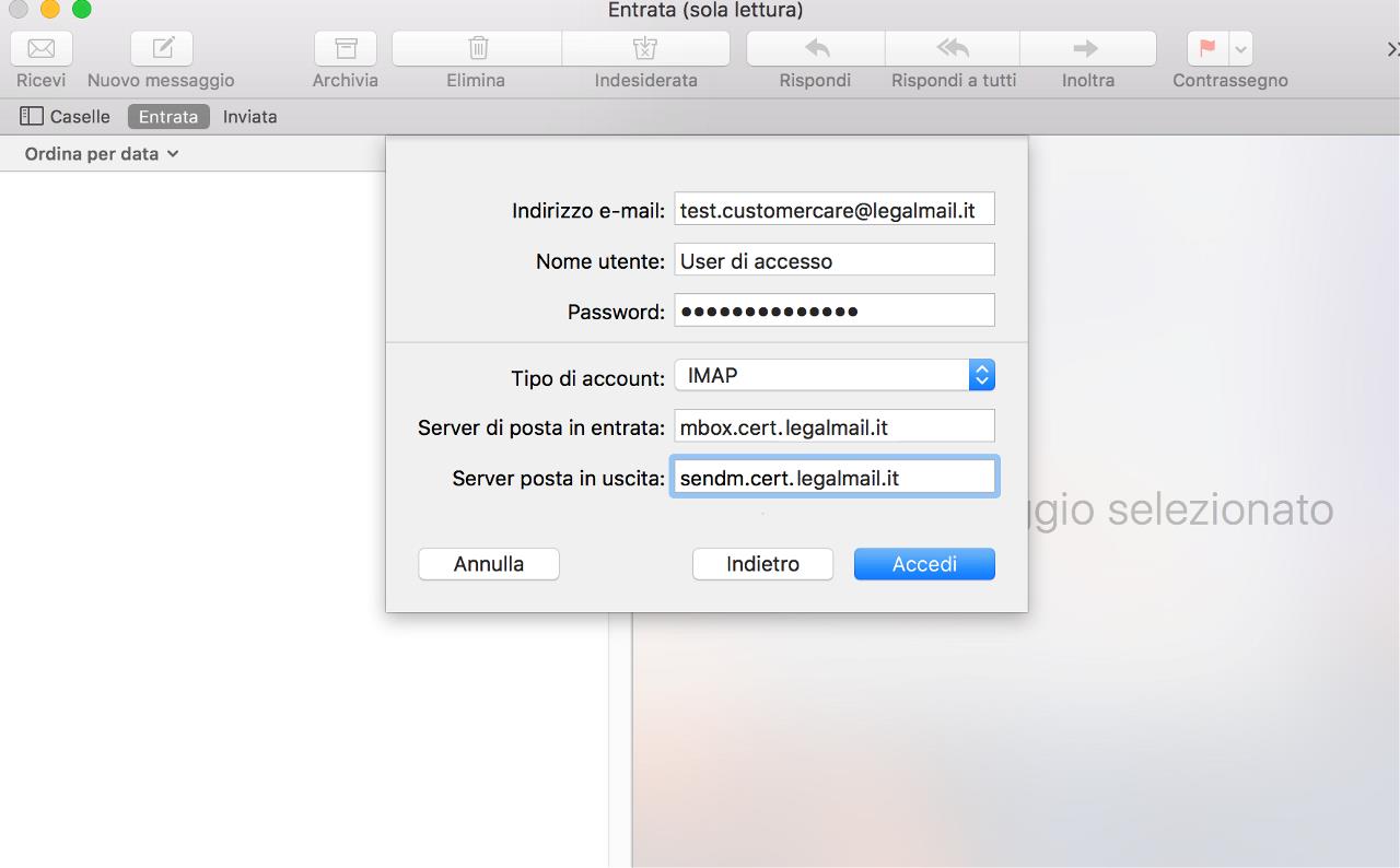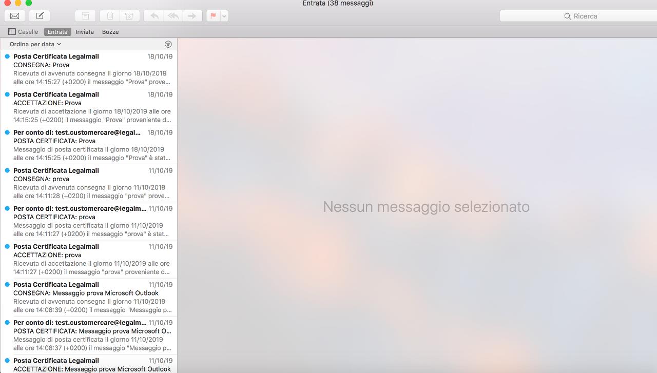 La mia casella PEC risulterà configurata sul client Apple Mail e potrò ricevere/inviare messaggi di posta certificata.