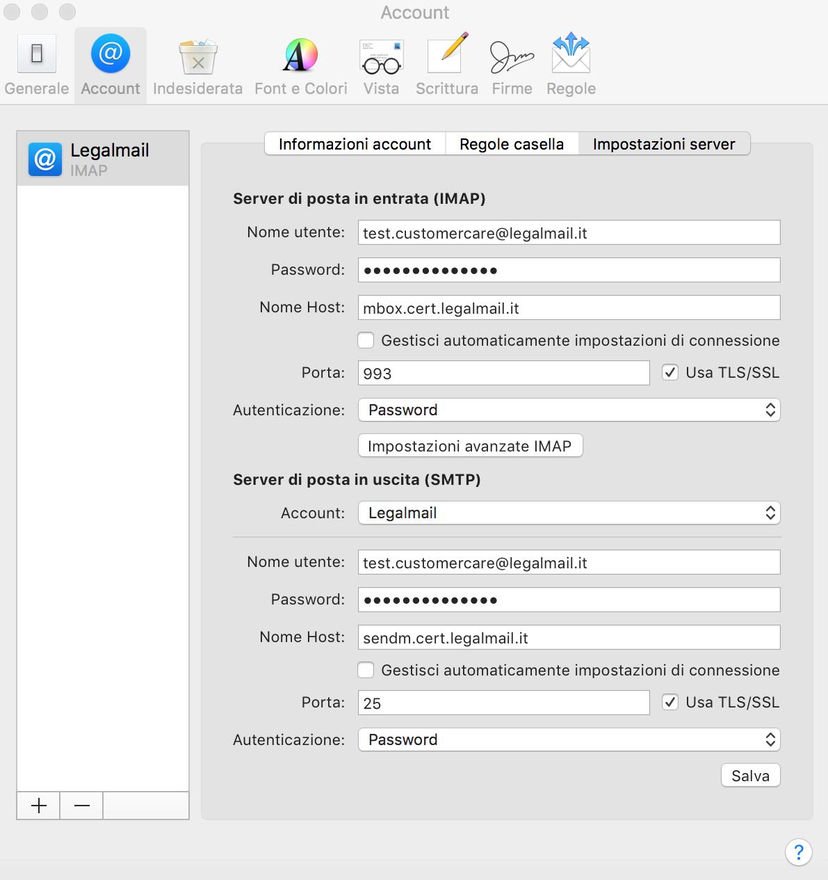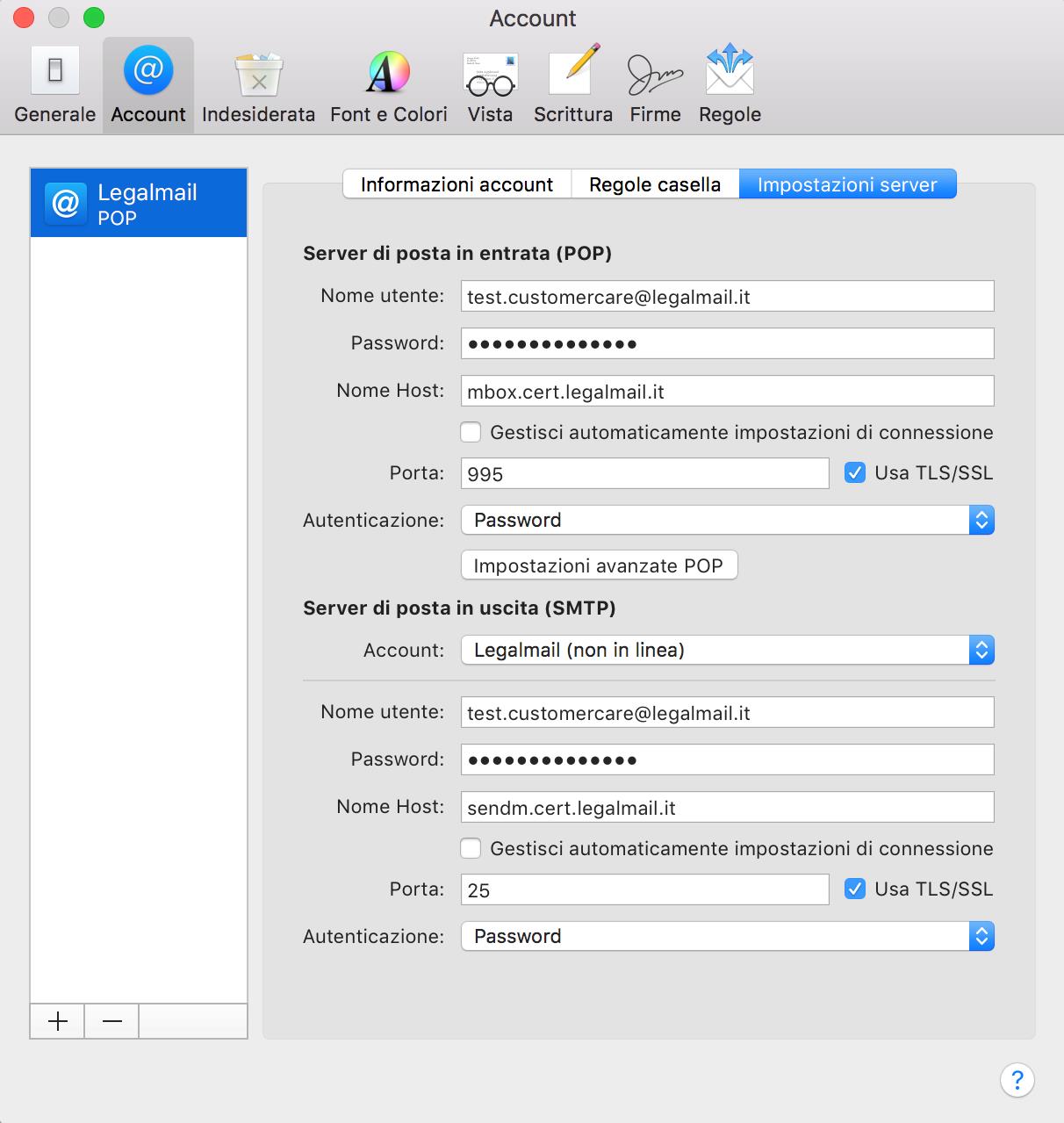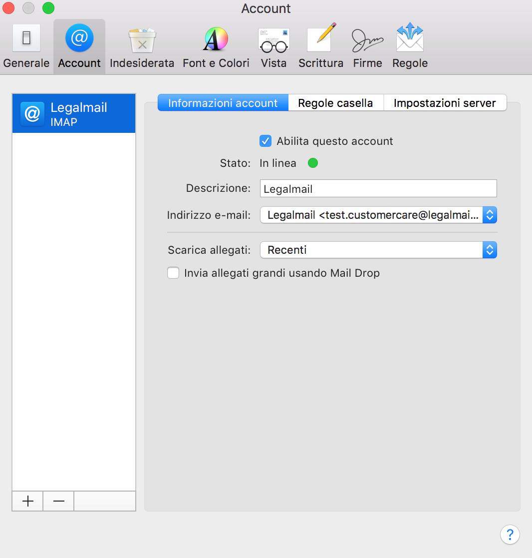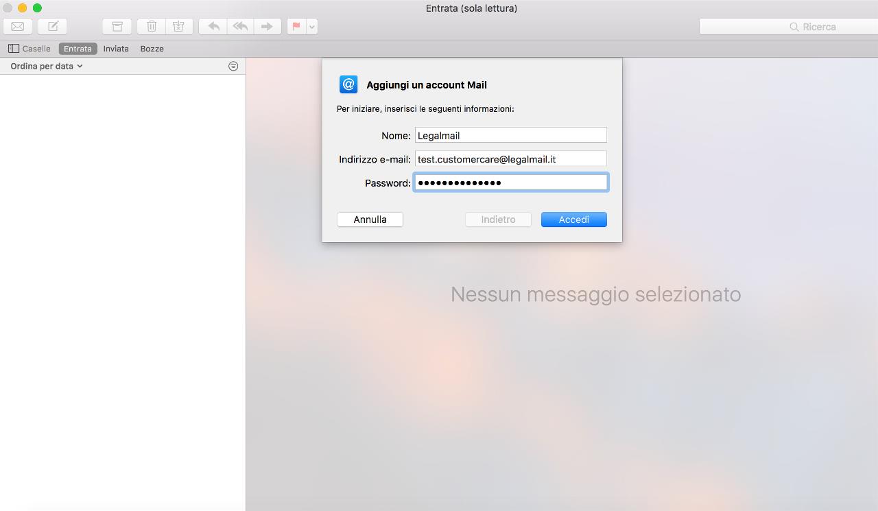 La mia casella PEC risulterà configurata sul client Apple Mail e potrò ricevere/inviare messaggi di posta certificata.