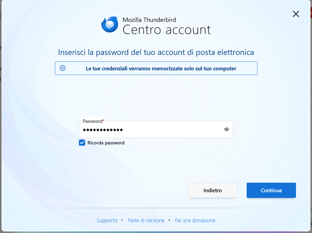 Inserire la Password del proprio account Legalmail e fare clic su Continua.