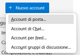 Procedo nella configurazione selezionando la voce Azioni Account e successivamente l'opzione Nuovo account e aggiungi Account di posta.