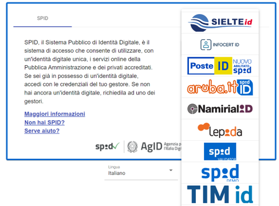 Cliccando sul tasto Entra con SPID si potrà selezionare il gestore della propria identità digitale.