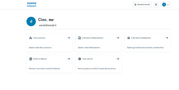 All’interno del proprio account negozio, una volta completato l’acquisto, sarà visibile il nuovo prodotto acquistato nella sezione “I tuoi servizi”.