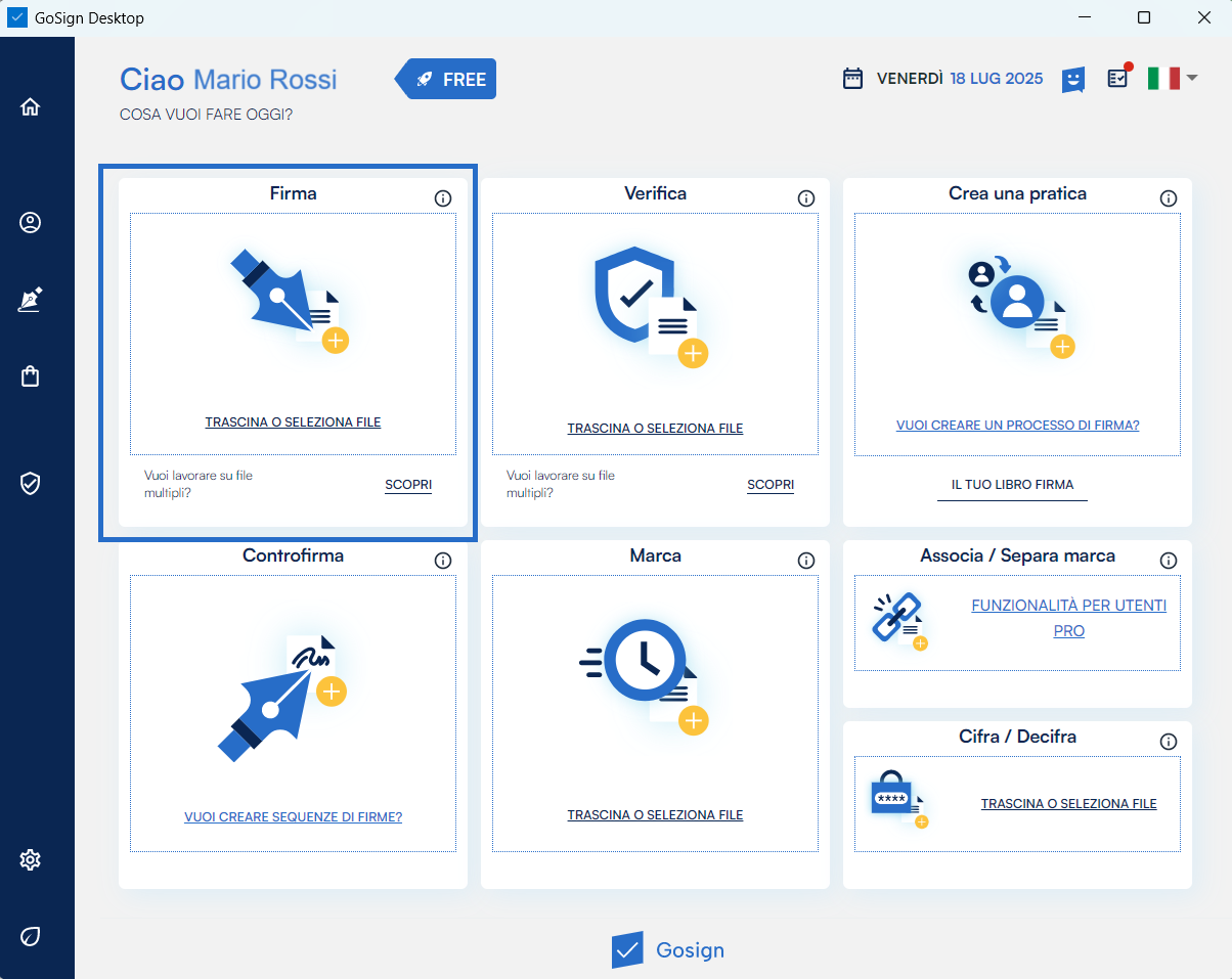 A partire dal 20 luglio 2025, GoSign Desktop evolve per offrirti un servizio sempre più sostenibile, affidabile e su misura, con una nuova licenza dedicata a chi usa dispositivi di altri operatori. Scopri di più! (guida acquisto/passaggio a Essential)