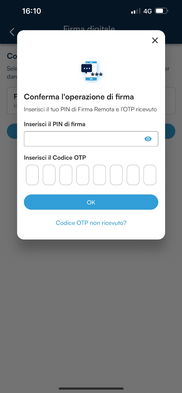 A questo punto sarà necessario inserire il PIN di protezione del proprio certificato nel campo Inserisci il PIN di firma e il codice OTP ricevuto via SMS e proseguire con un clic sul pulsante Ok.