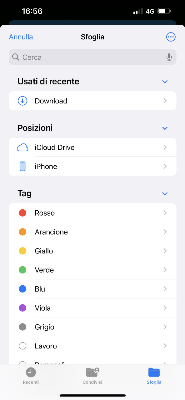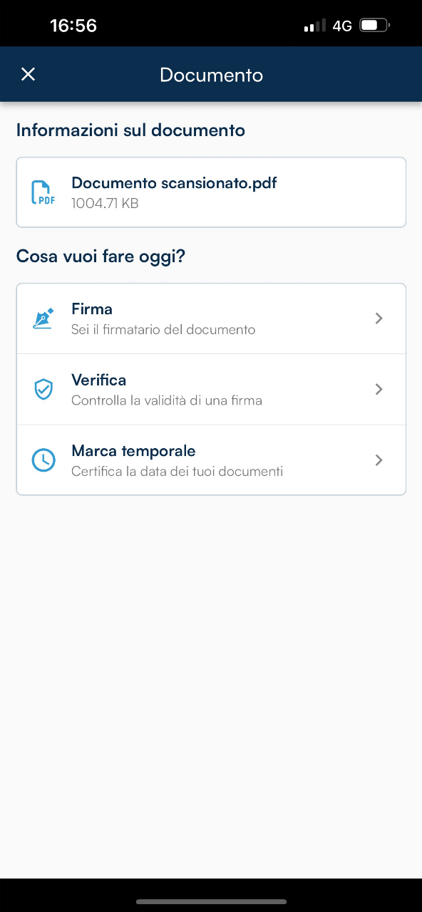 Una volta individuato il percorso per arrivare alla cartella in cui sono salvati i propri documenti (ricerca tra quelli a disposizione dell’App o salvati sul cellulare), andrà selezionato quello che interesserà sottoporre all'operazione prescelta.