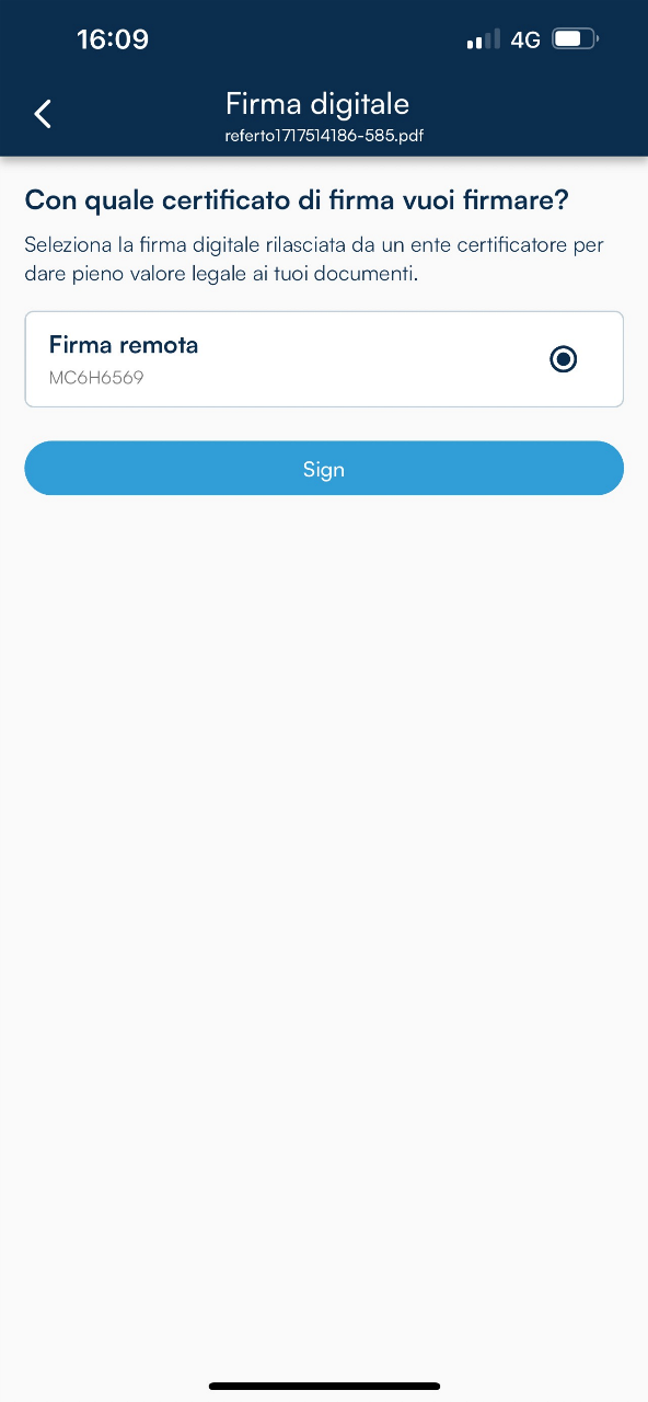 Il passaggio successivo consiste nella selezione del certificato di firma remota con il quale apporre la firma digitale sul documento.