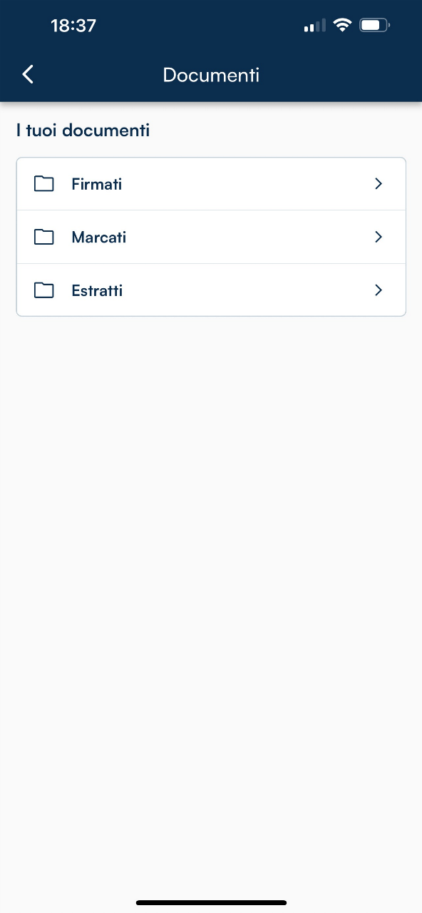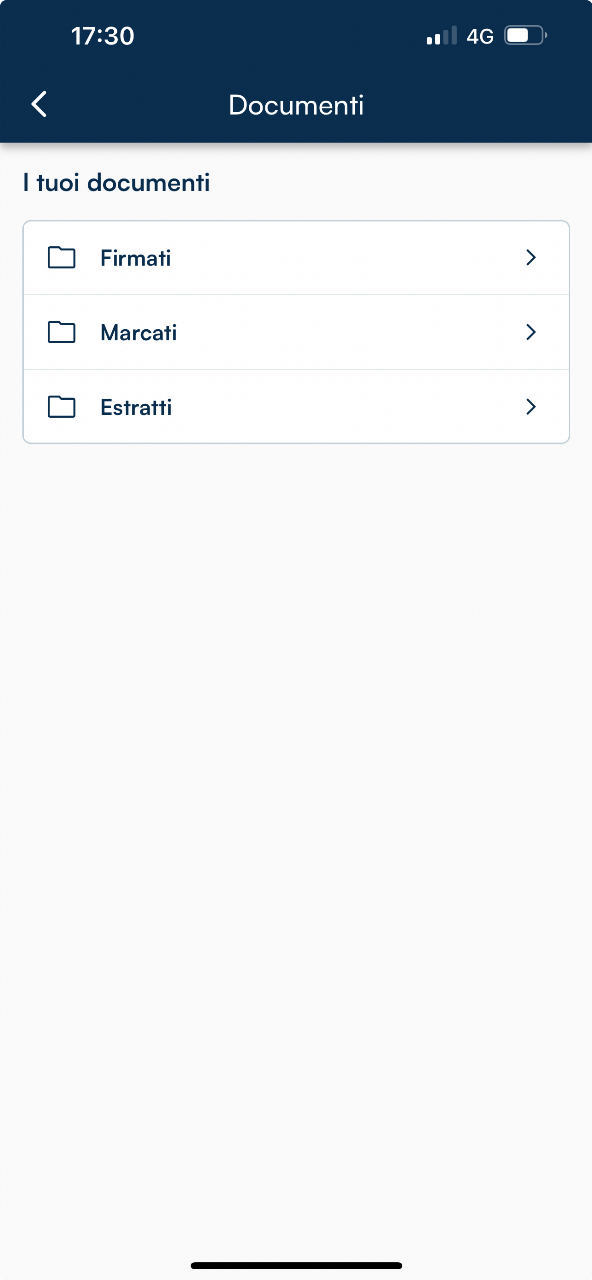 I documenti marcati temporalmente sono salvati all'interno della cartella Marcati nell’area Documenti dell’App GoSign.