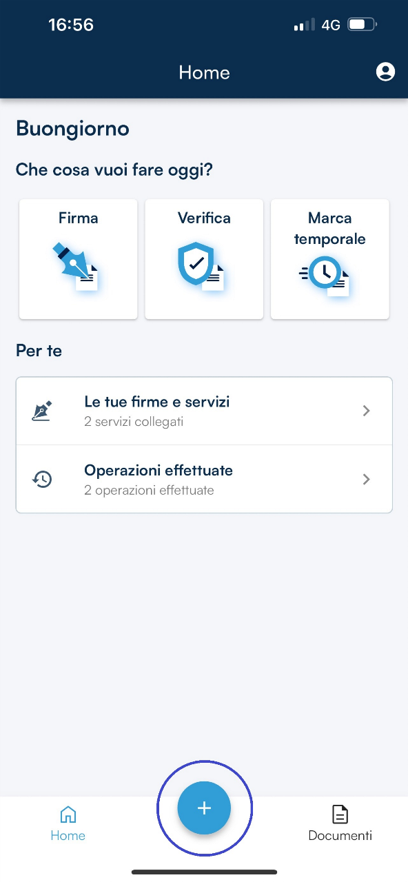 E’ possibile raggiungere i documenti da sottoporre alla firma digitale dalla sezione Firma o cliccando sull’icona +, opzioni presenti nella homepage dell’App GoSign Desktop.