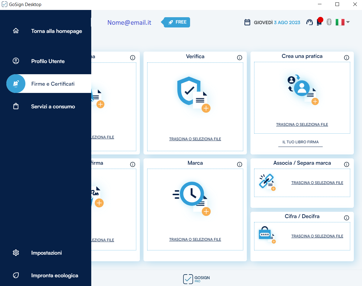 Questa guida, tuttavia, descrive le funzionalità che caratterizzano la versione PRO di GoSign Desktop.