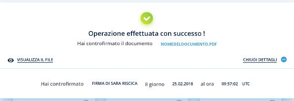 Una volta scelta la destinazione del documento cliccando sul tasto Conferma, concludo il processo di sottoscrizione del documento.