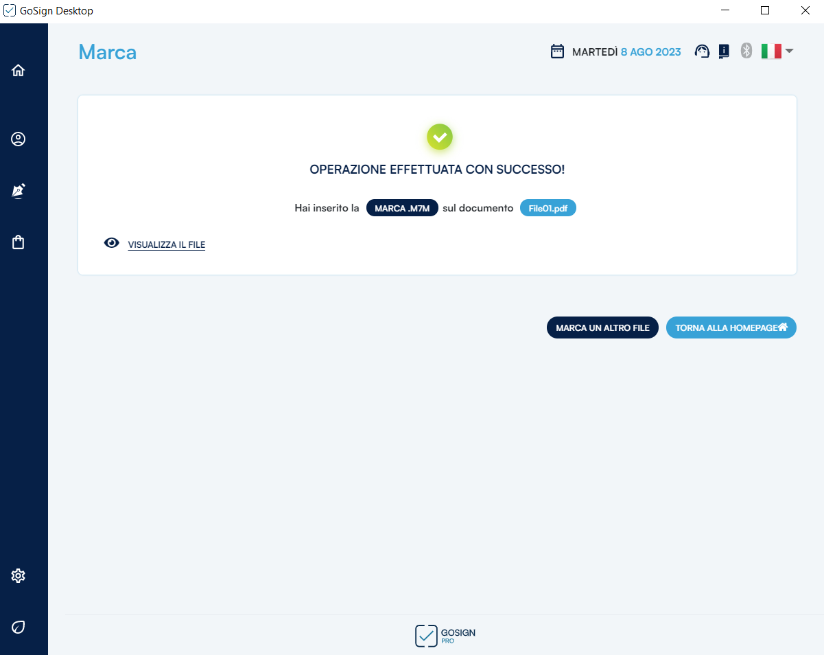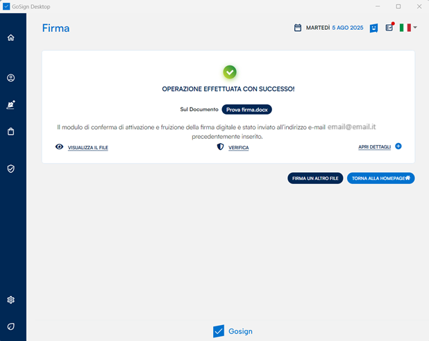 Al termine dell’operazione, GoSign Desktop PRO ne confermerà il buon esito.