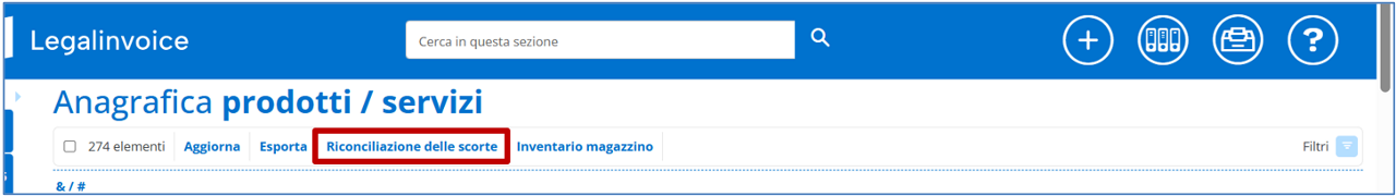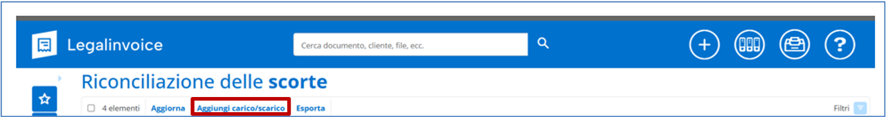 Con la ricezione della fatture passive si va ad alimentare la gestione delle scorte nel magazzino. Il carico delle scorte avviene tramite la funzione di Riconciliazione delle scorte, accessibile sia dalla barra laterale