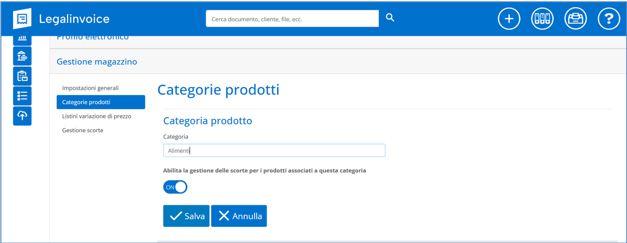E’ possibile abilitare la gestione delle scorte anche sulle Categorie