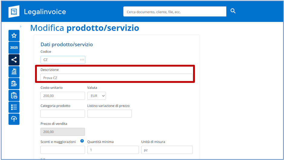 E’ possibile modificare codice e descrizione del prodotto in modo tale che alla ricezione di una nuova fattura contente quel prodotto, in automatico, il sistema lo riconoscerà e in fase di riconciliazione lo proporrà con codice e descrizione presente in anagrafica.