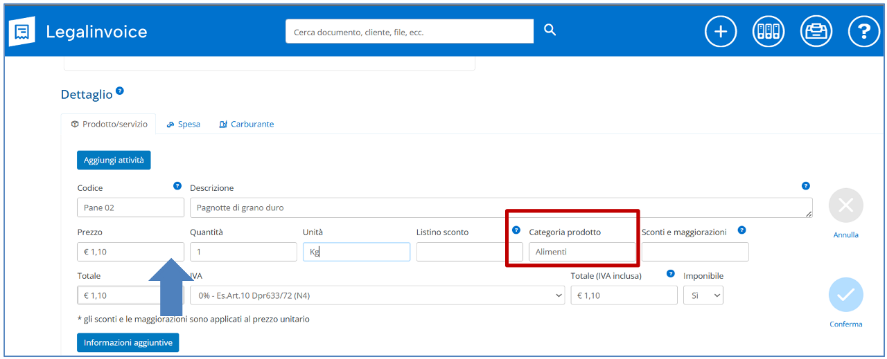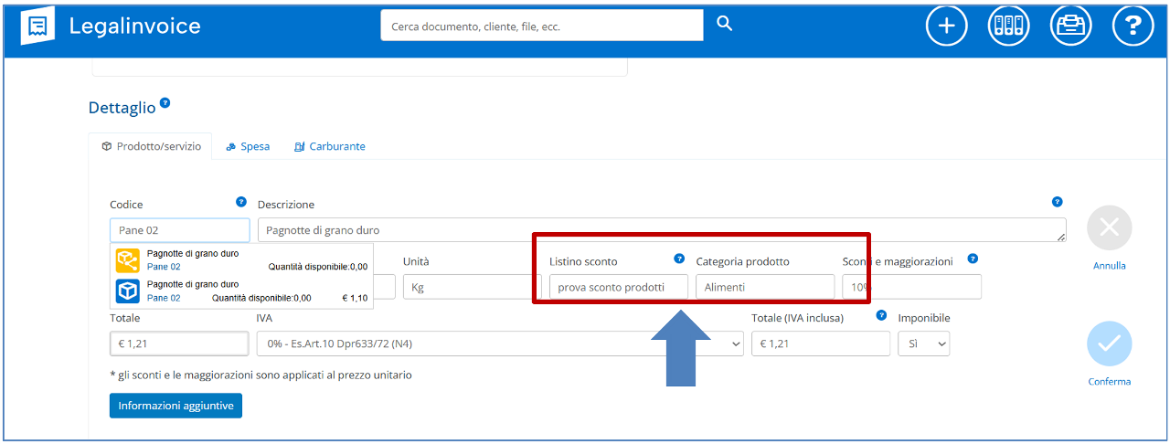Nel caso in cui si emetta una fattura verso un cliente non abbinato ad alcun listino e nel dettaglio si richiami un prodotto abbinato ad una categoria, verrà applicata la sola scontistica/maggiorazione della categoria, già inclusa nel prezzo di vendita.