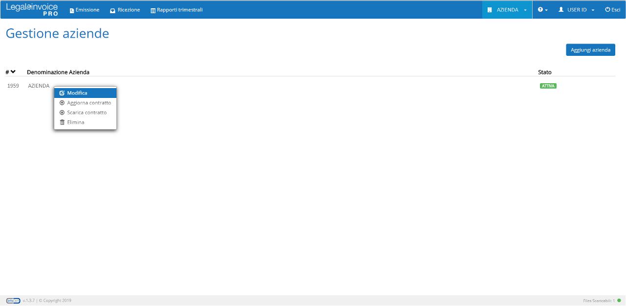 Compare una finestra all'interno della quale identifico la funzione Gestisci aziende.