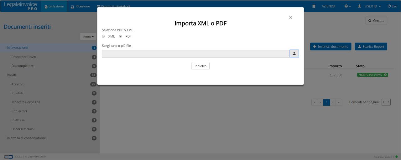 Scelgo l'opzione PDF e subito dopo seleziono il/i documento/i da inviare.
