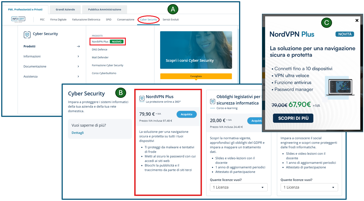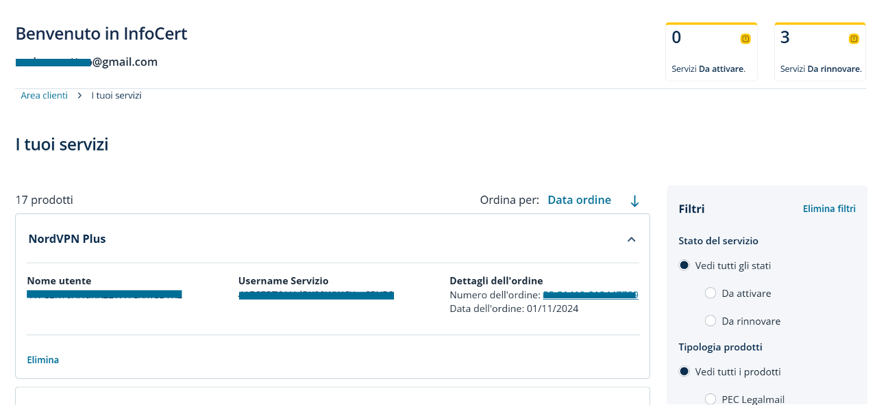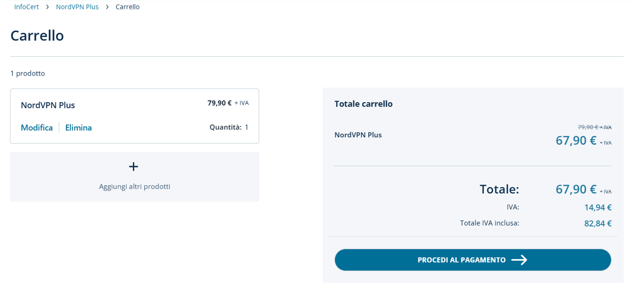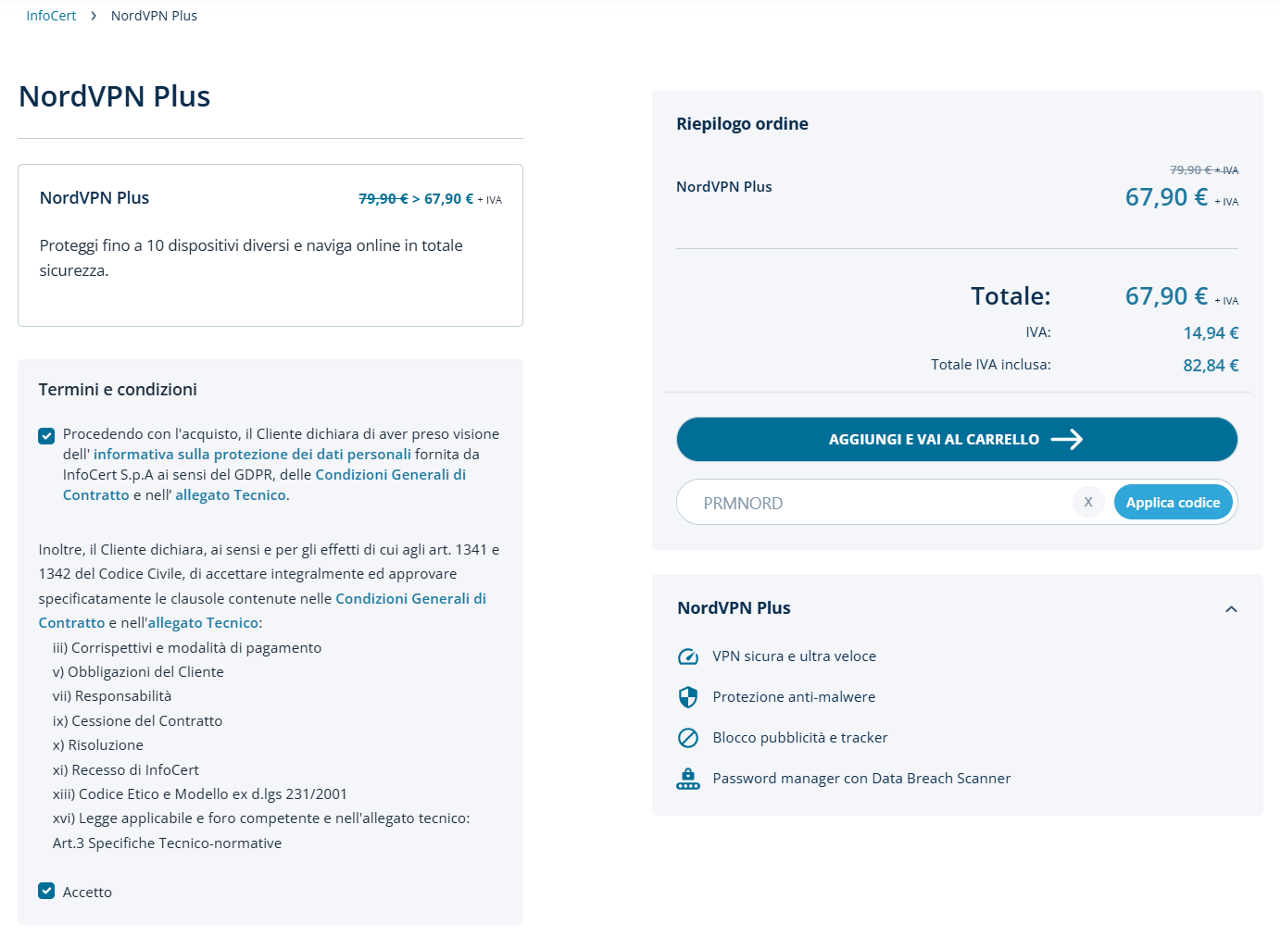 Il servizio NordVPN Plus può essere acquistato sul sito Infocert.it: