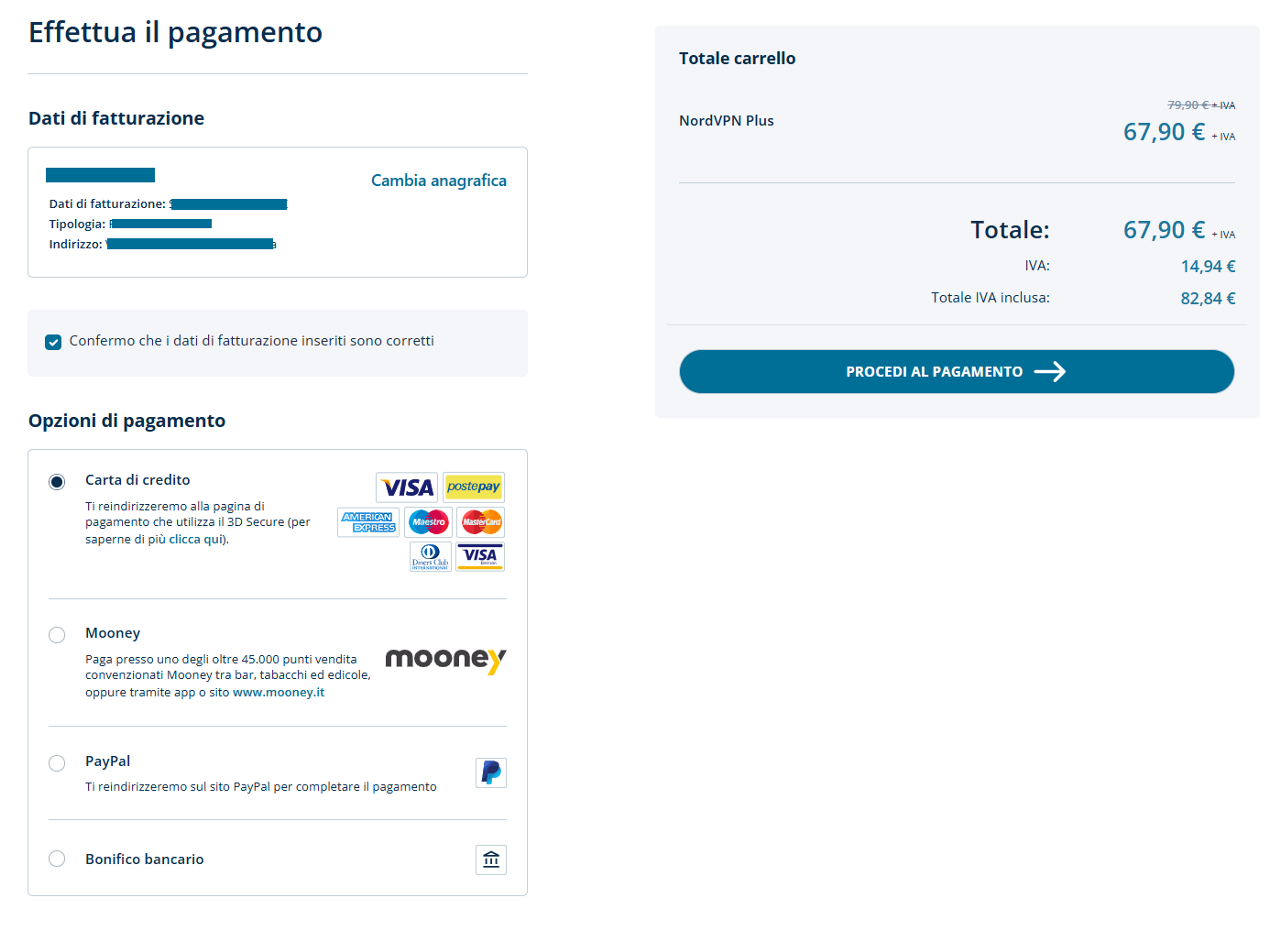 Clicca sul pulsante PROCEDI AL PAGAMENTO per proseguire oltre.