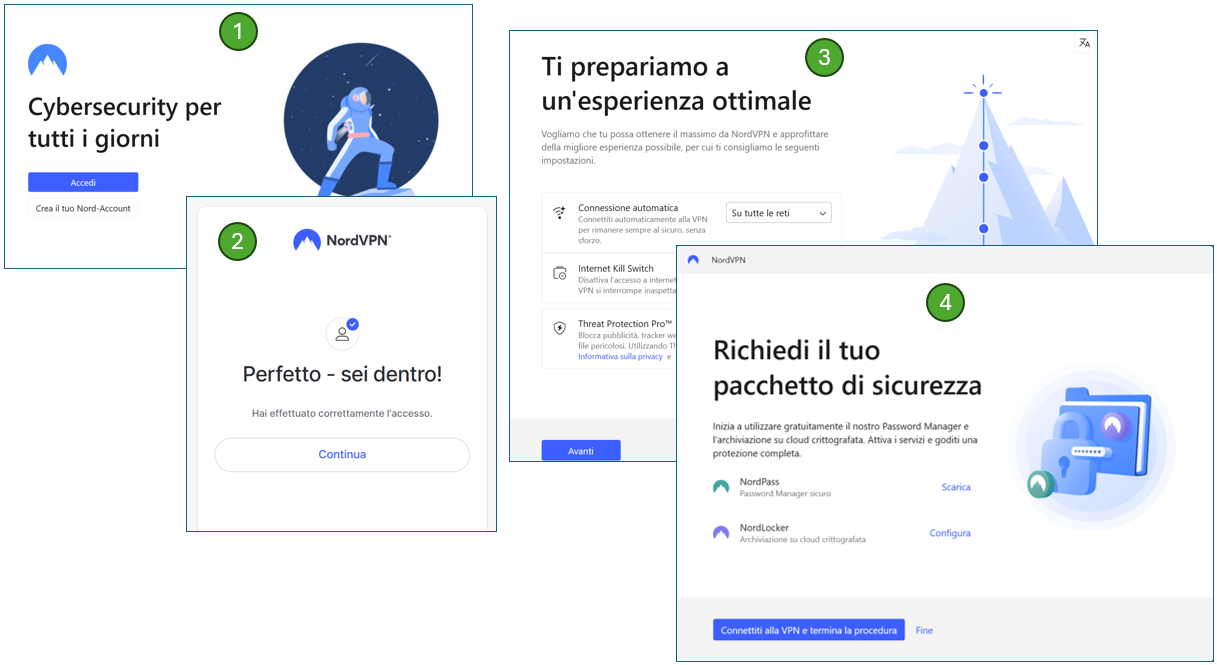 Accedendo alla dashboard dell'app completi la configurazione di NordVPN.