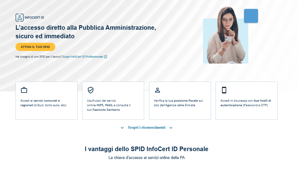 All’interno del sito InfoCert dedicato all'Identità Digitale è possibile trovare le informazioni utili sul servizio e l’area da cui iniziare il processo di attivazione della propria Identità Digitale.