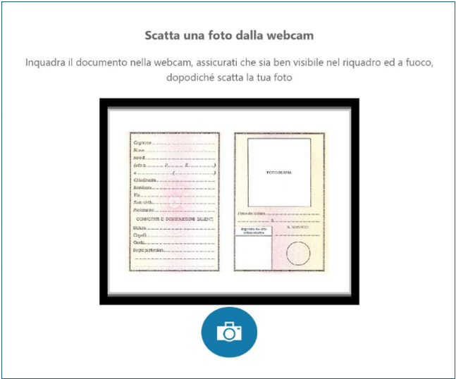 In alternativa sarà possibile fotografare direttamente il documento FRONTE e RETRO tramite la webcam del PC.