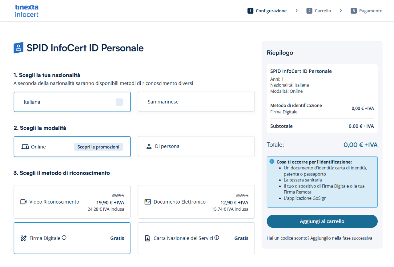 Nel caso sia previsto un pagamento per l’attività di riconoscimento, questo andrà corrisposto direttamente alla struttura e non ad InfoCert.
