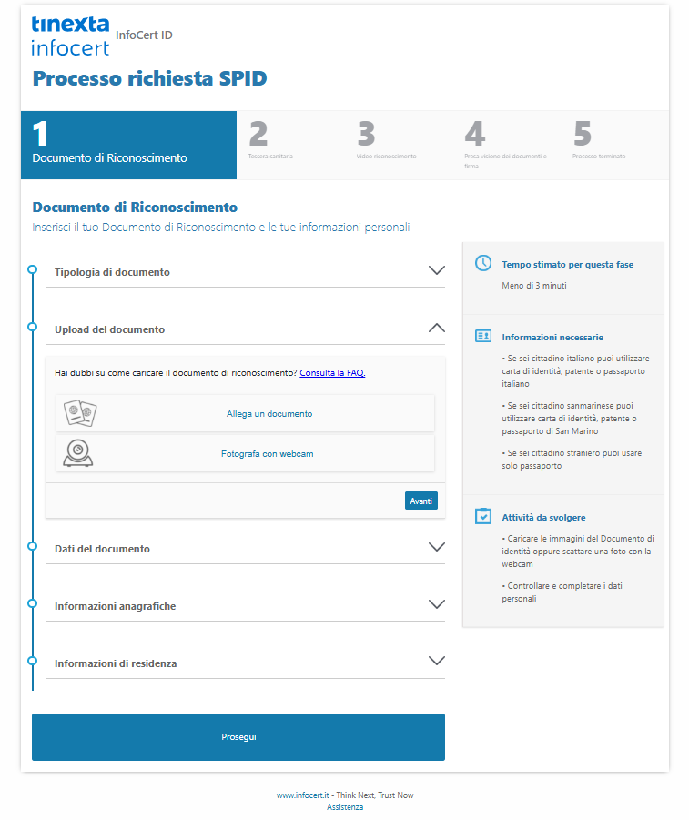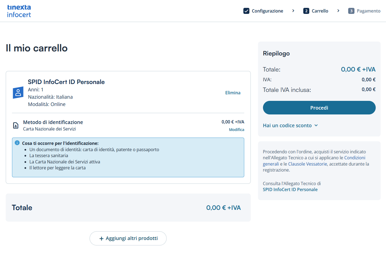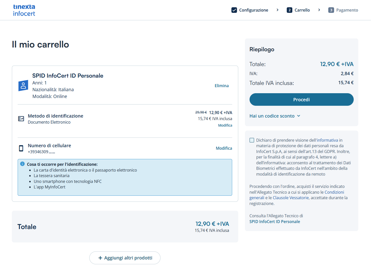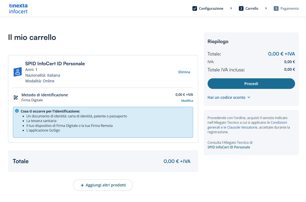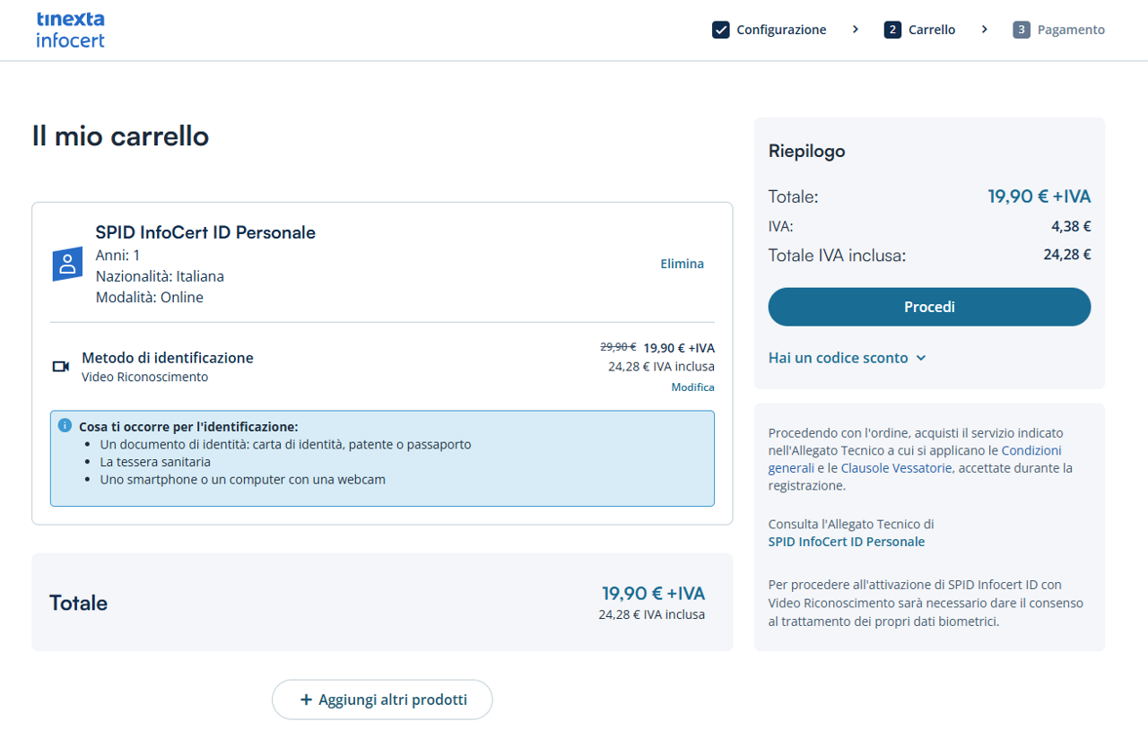 Nella schermata successiva avrai il riepilogo del metodo di riconoscimento selezionato. Clicca su Procedi per proseguire oltre.