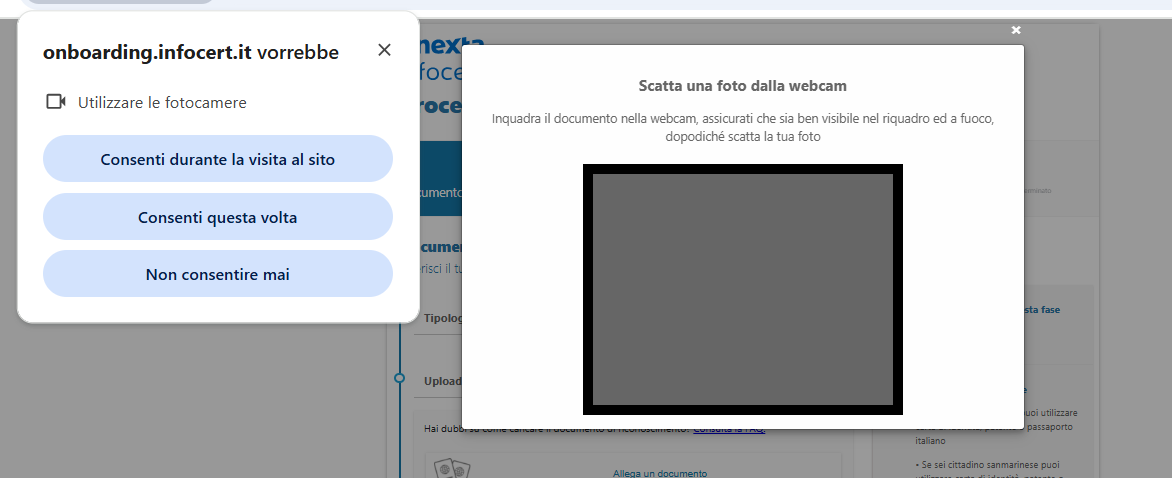 La scelta del metodo di Video Riconoscimento Online permetterà di attivare, successivamente, una sessione di videoconferenza registrata con un Operatore InfoCert.