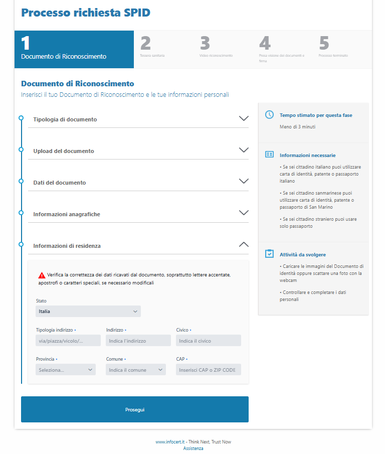 Da questo momento InfoCert, in qualità di Gestore di Identità Digitale, procederà con la verifica dei dati inseriti attenendosi ai tempi previsti per l’erogazione del servizio.