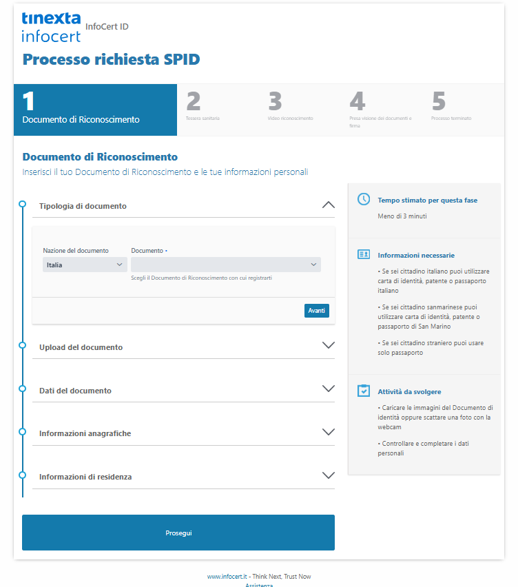 Per quanto riguarda il tipo di identità, InfoCert rilascia un account SPID di Livello 2 utilizzando l'App SPID My Infocert.