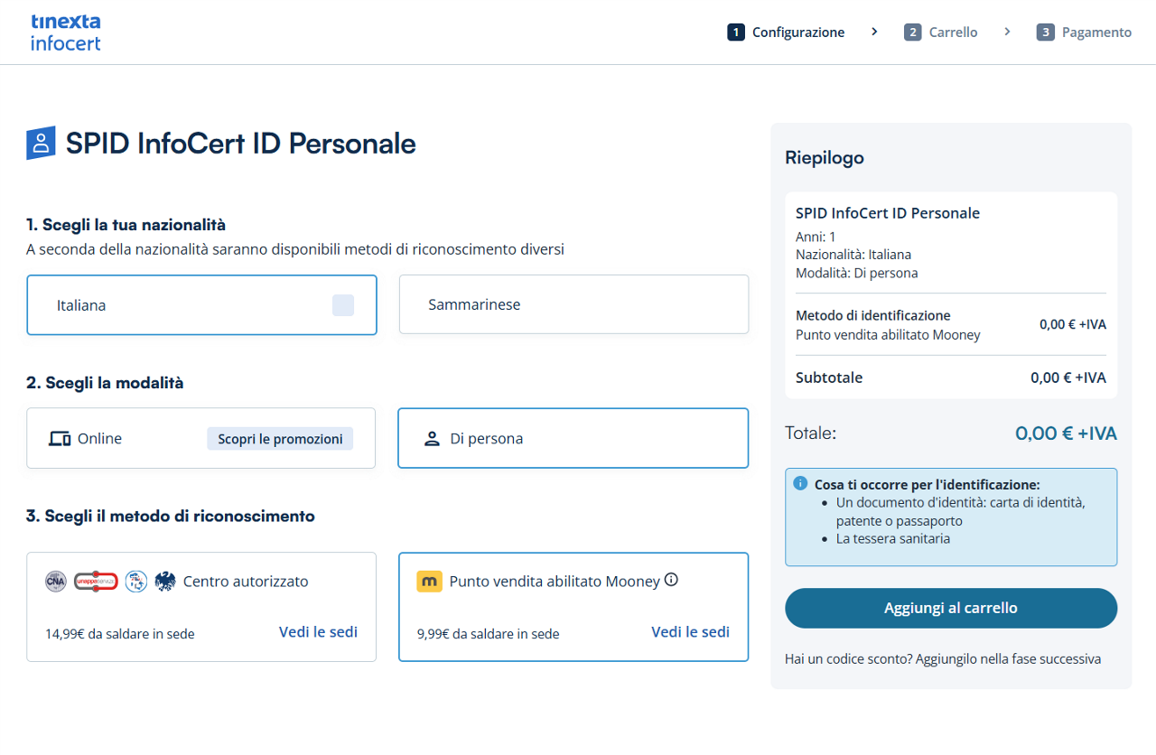 riconoscimento di Persona. Si potrà scegliere, tra i punti convenzionati con InfoCert, se recarsi presso un punto vendita abilitato del Circuito Mooney, oppure un Centro Autorizzato CNA, UNAPPA o CAF.