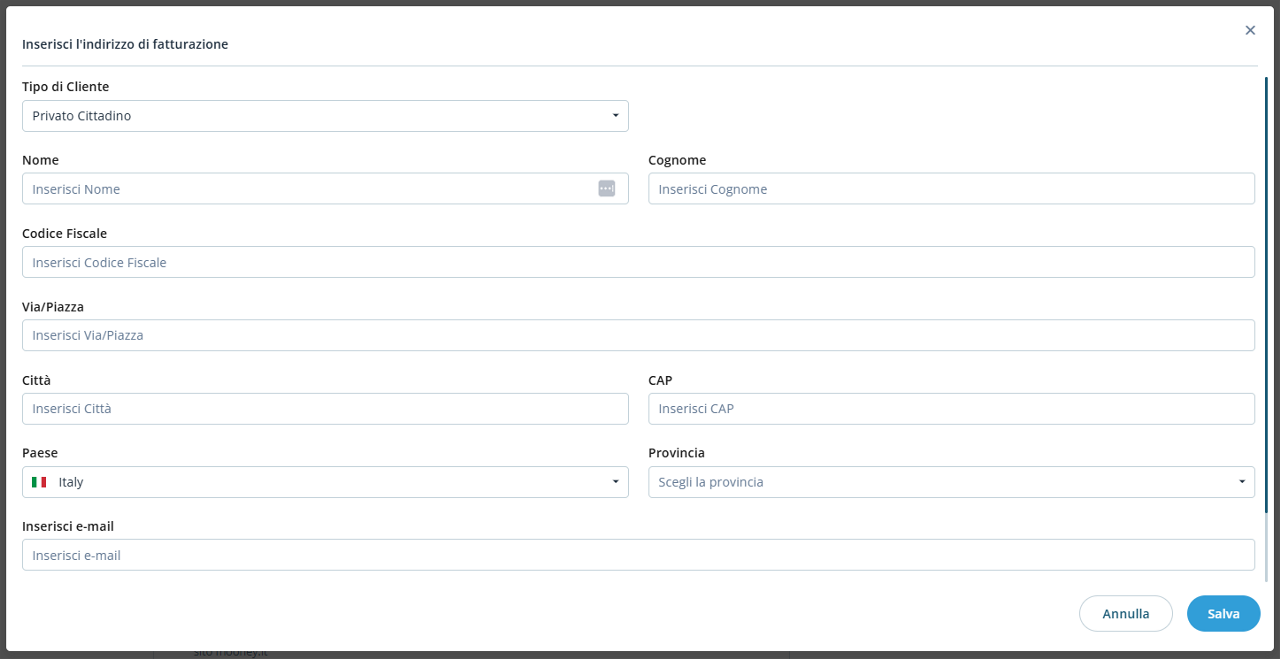 Prima di concludere l'acquisto sarà necessario inserire l'indirizzo di fatturazione.