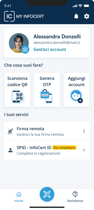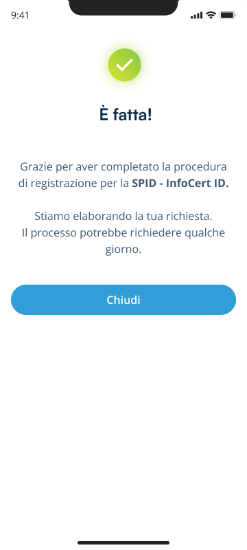 Da questo momento InfoCert, in qualità di Gestore di Identità Digitale, procederà con la verifica dei dati inseriti attenendosi ai tempi previsti per l’erogazione del servizio (48 ore lavorative).