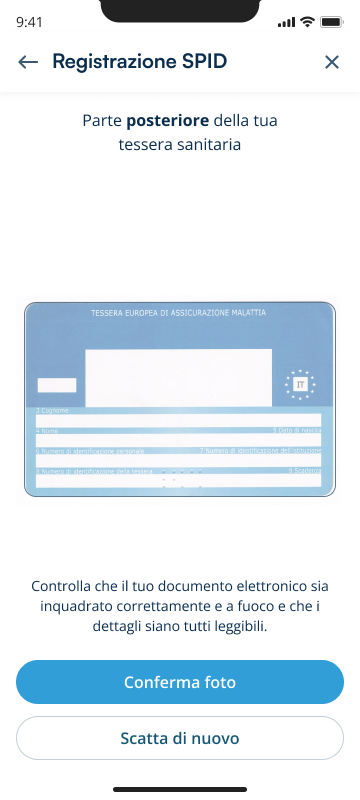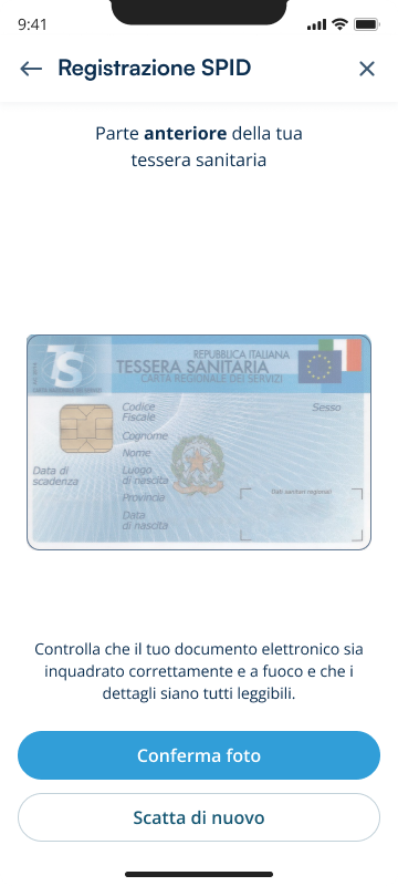 Ora, è il momento di scattare una foto del FRONTE del documento Tessera Sanitaria.