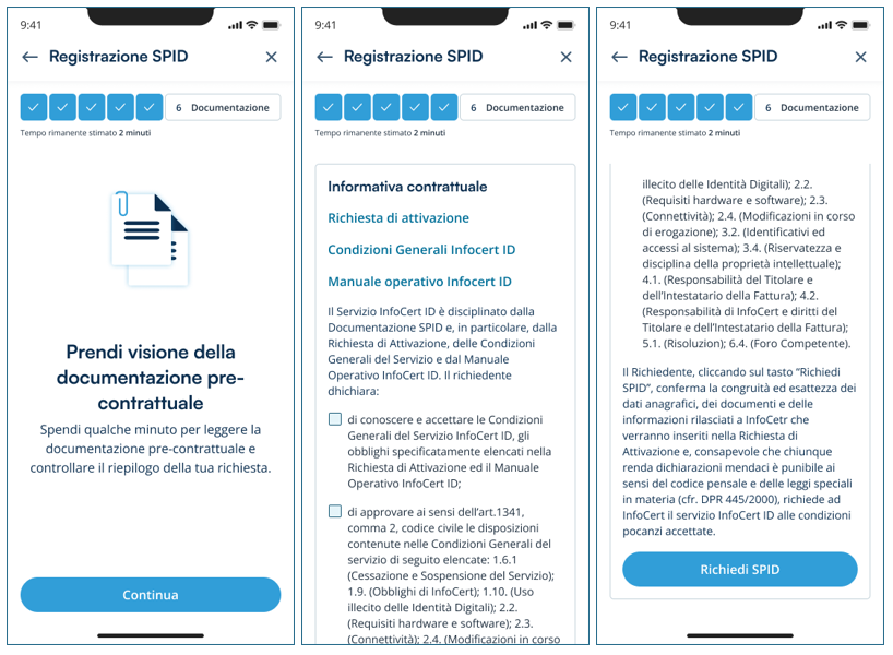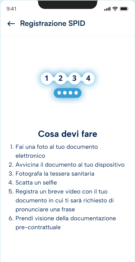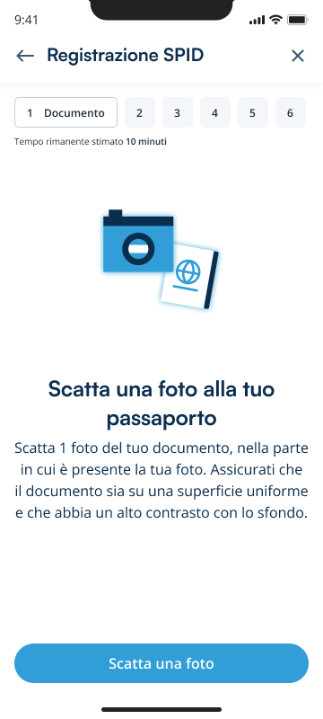 Una volta scelto il tipo di documento che si vorrà utilizzare, il sistema proporrà un breve riepilogo delle operazioni che si dovranno effettuare, con indicazione del numero di step e del tempo necessario per completare l’intera richiesta.
