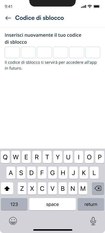 Nella schermata successiva verrà chiesto di confermare il Codice di Sblocco scelto.