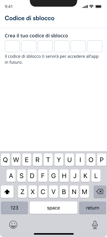 A questo punto della procedura, viene chiesto di scegliere un Codice di Sblocco che verrà utilizzato per confermare le richieste di codici OTP.
