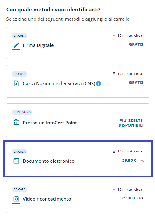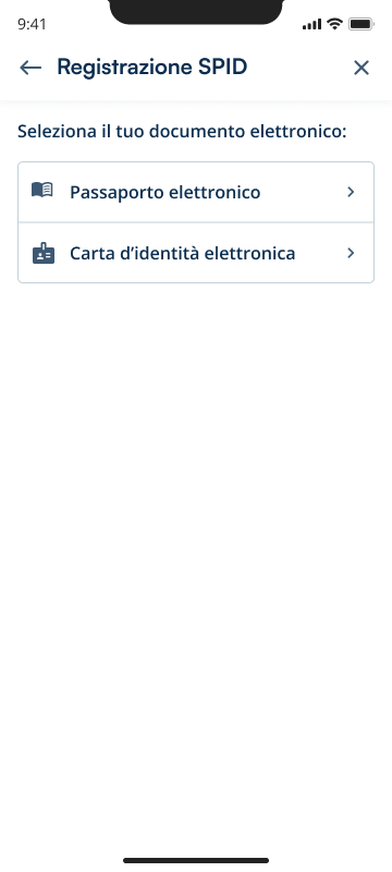 Il sistema chiederà ora di scegliere il tipo di documento elettronico che si utilizzerà per la richiesta della propria utenza SPID: