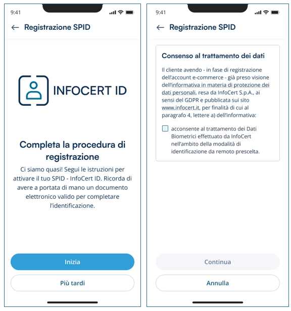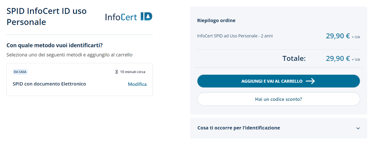 “Sono Nome e Cognome e voglio dotarmi di una identità digitale SPID con InfoCert”.