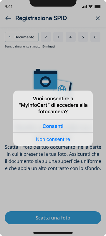 Si dovrà consentire preventivamente all’App l’accesso alla fotocamera per scattare foto e registrare video.