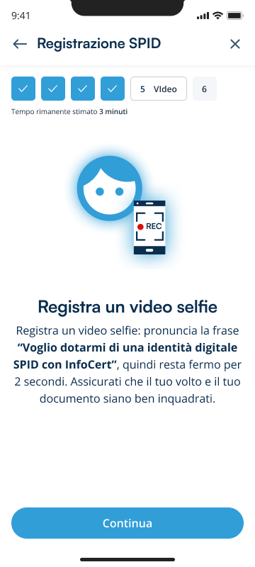 Lo step successivo riguarda la registrazione di un breve video-selfie in cui si dovrà mostrare il proprio volto, il documento e pronunciare la frase: