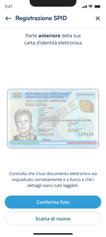 Il primo step è quello di scattare una foto del FRONTE del proprio documento.