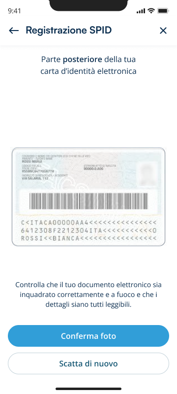Il passo successivo è rappresentato dalla fotografia del RETRO del documento.