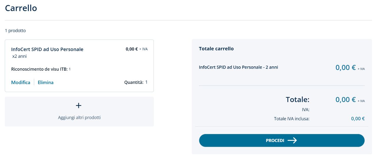 Dopo aver visionato nuovamente il riepilogo dell'ordine che si sta effettuando fare click su PROCEDI.